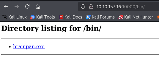 ┌──(sec㉿kali)-[~/Documents/thm/brainpan] └─$ python3 -m 'http.server' Serving HTTP on 0.0.0.0 port 8000 (http://0.0.0.0:8000/) ...