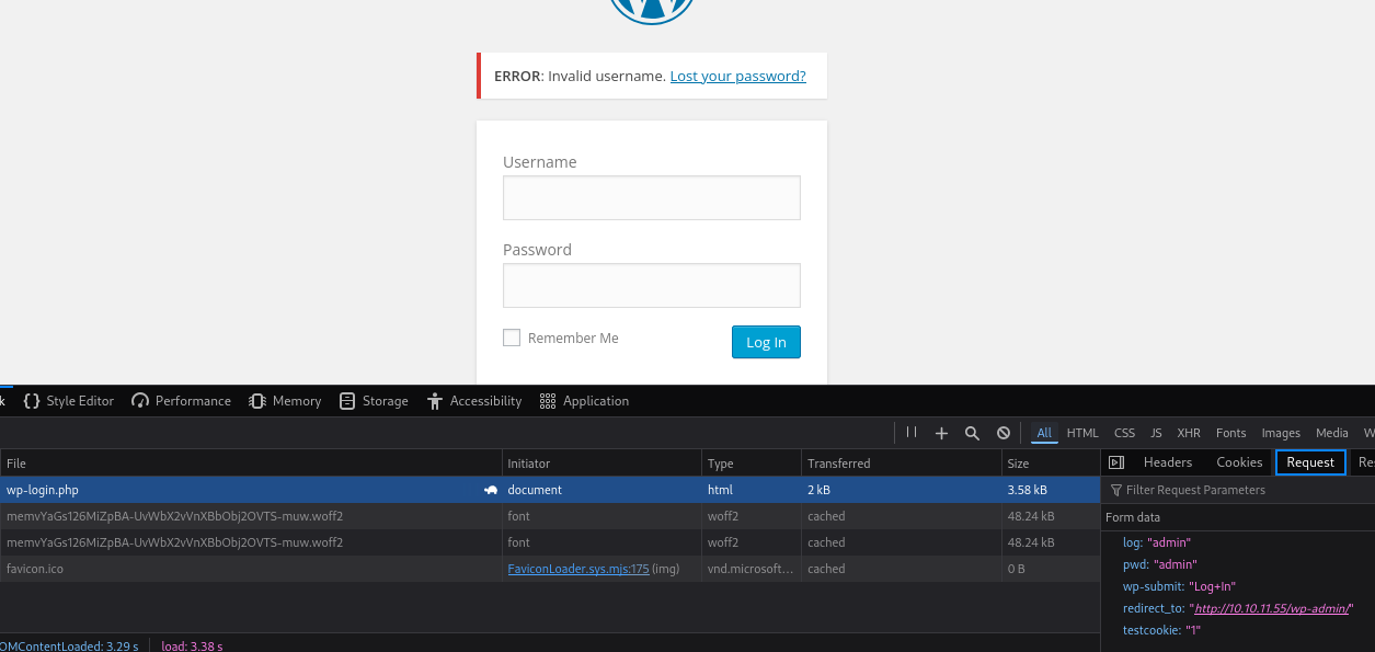wp-login [Status: 200, Size: 2657, Words: 115, Lines: 53, Duration: 666ms]