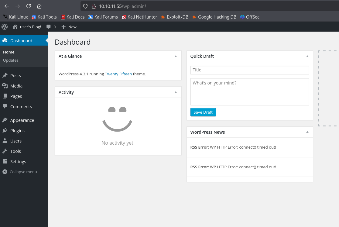[+] The external WP-Cron seems to be enabled: http://10.10.11.55/wp-cron.php