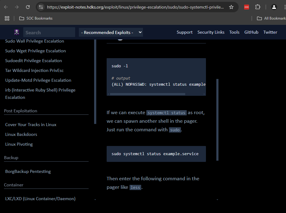 Research systemctl to see all the different ways that we can abuse it to privesc.