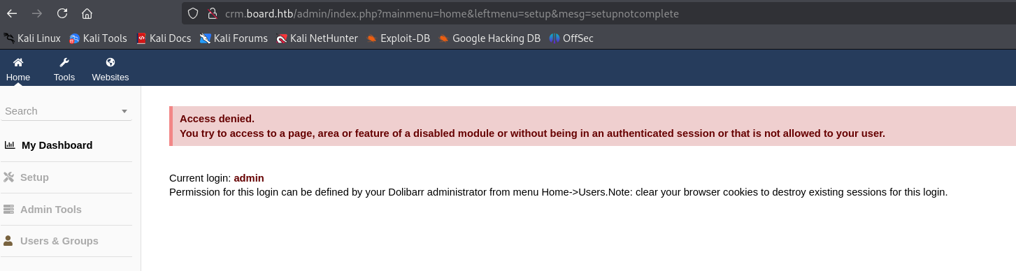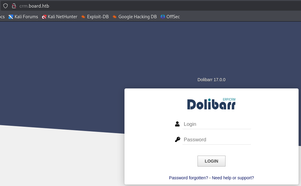 127.0.0.1 localhost 127.0.1.1 kali 10.10.11.11 board.htb crm.board.htb # The following lines are desirable for IPv6 capable hosts ::1 localhost ip6-localhost ip6-loopback ff02::1 ip6-allnodes ff02::2 ip6-allrouters