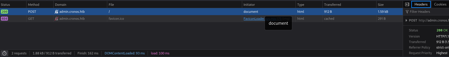 └─$ ffuf -w /usr/share/seclists/Discovery/DNS/subdomains-top1million-110000.txt -u http://cronos.htb -H "Host: FUZZ.cronos.htb" -fw 3534
