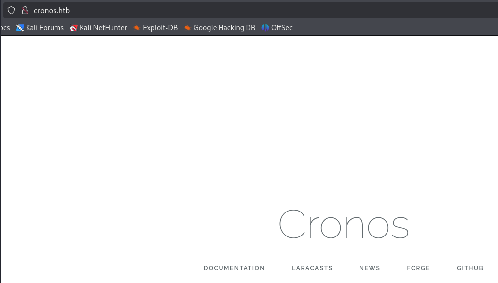 Check the landing page that is being served on port 80. Cronos.htb seems to get a different result than the Apache page.