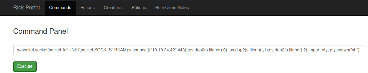Use the payload from revshells and use it in the Command Panel and click the Execute button.