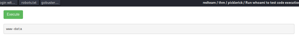 www-data@ip-10-10-101-216:/var/www/html$ cd /home/rick cd /home/rick www-data@ip-10-10-101-216:/home/rick$ ls ls <second flag file> www-data@ip-10-10-101-216:/home/rick$ cat <second flag file> cat <second flag file> <flag>