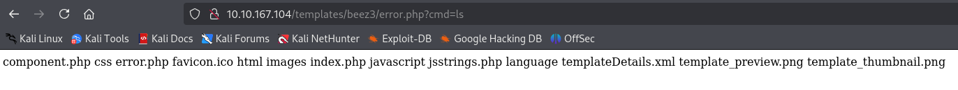 Giving it a think, one of the common ways I like to pop Wordpress is injecting php into themes. Twenty-sixteen 404.php for the win! Let’s see if we can’t do something similar with templates. We can add a small system line into the error.php file in the beez3 template.