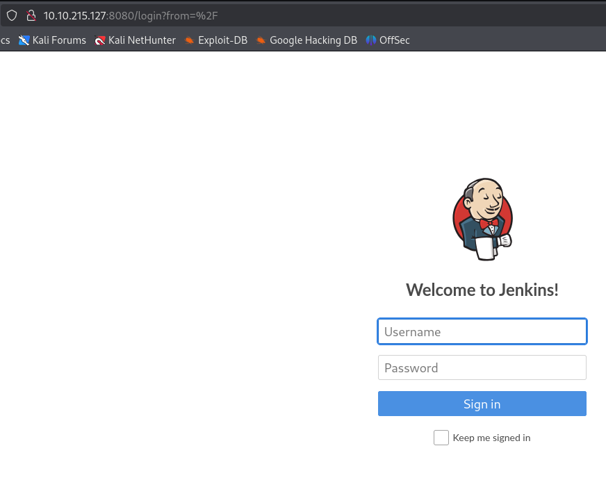 ┌──(kali㉿kali)-[~/Documents/thm/alfred] └─$ sudo nmap -sC -sV -A -O -oN nmap -Pn 10.10.215.127 Starting Nmap 7.95 ( https://nmap.org ) at 2025-02-26 01:01 AEDT Nmap scan report for 10.10.215.127 Host is up (0.26s latency). Not shown: 997 filtered tcp ports (no-response) PORT STATE SERVICE VERSION 80/tcp open http Microsoft IIS httpd 7.5 |_http-title: Site doesn't have a title (text/html). | http-methods: |_ Potentially risky methods: TRACE |_http-server-header: Microsoft-IIS/7.5 3389/tcp open tcpwrapped | rdp-ntlm-info: | Target_Name: ALFRED | NetBIOS_Domain_Name: ALFRED | NetBIOS_Computer_Name: ALFRED | DNS_Domain_Name: alfred | DNS_Computer_Name: alfred | Product_Version: 6.1.7601 |_ System_Time: 2025-02-25T14:01:49+00:00 8080/tcp open http Jetty 9.4.z-SNAPSHOT |_http-title: Site doesn't have a title (text/html;charset=utf-8). |_http-server-header: Jetty(9.4.z-SNAPSHOT) | http-robots.txt: 1 disallowed entry |_/ <snip>