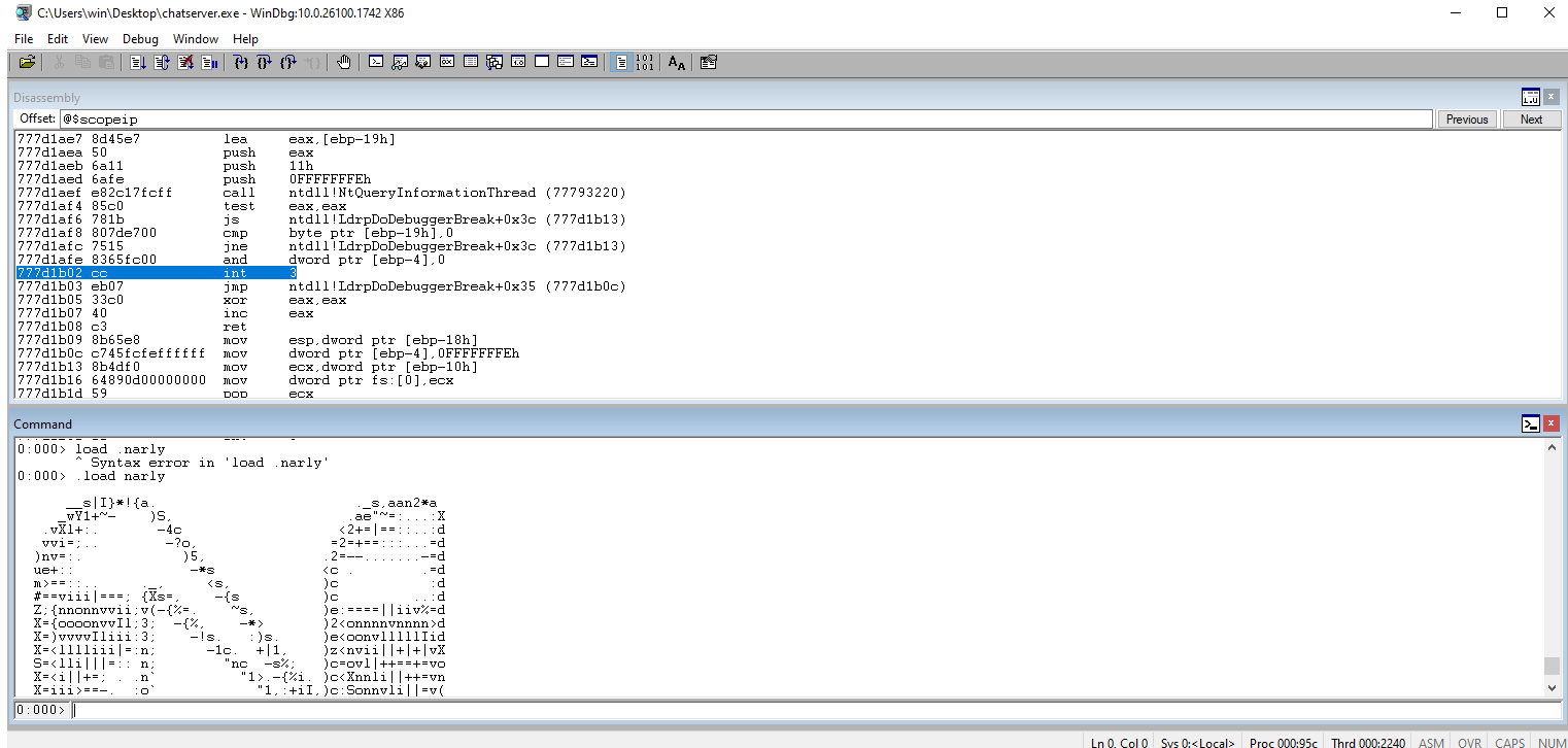 In WinDBG, load the narly module.