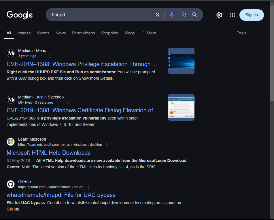 https://sotharo-meas.medium.com/cve-2019-1388-windows-privilege-escalation-through-uac-22693fa23f5f