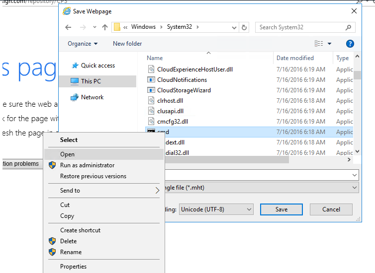 Scroll down to the cmd.exe file, right-click on it, and click Open.