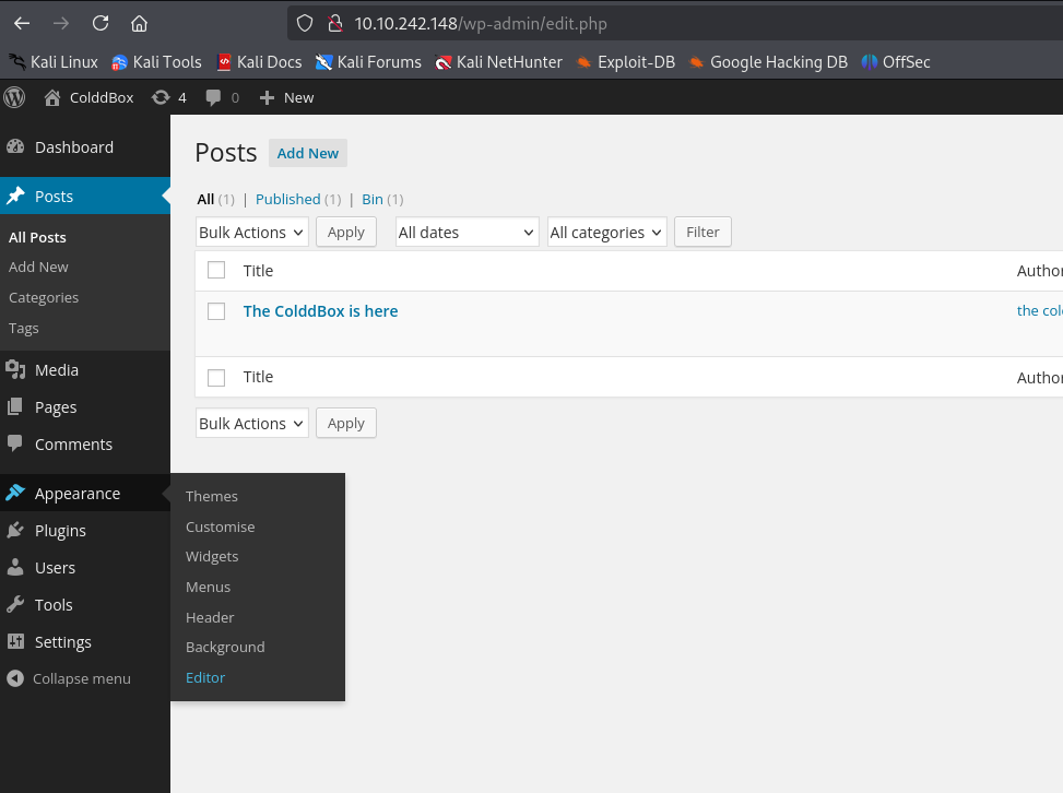 Coincidiendo entradas por defecto para c0ldd en ColddBox-Easy: