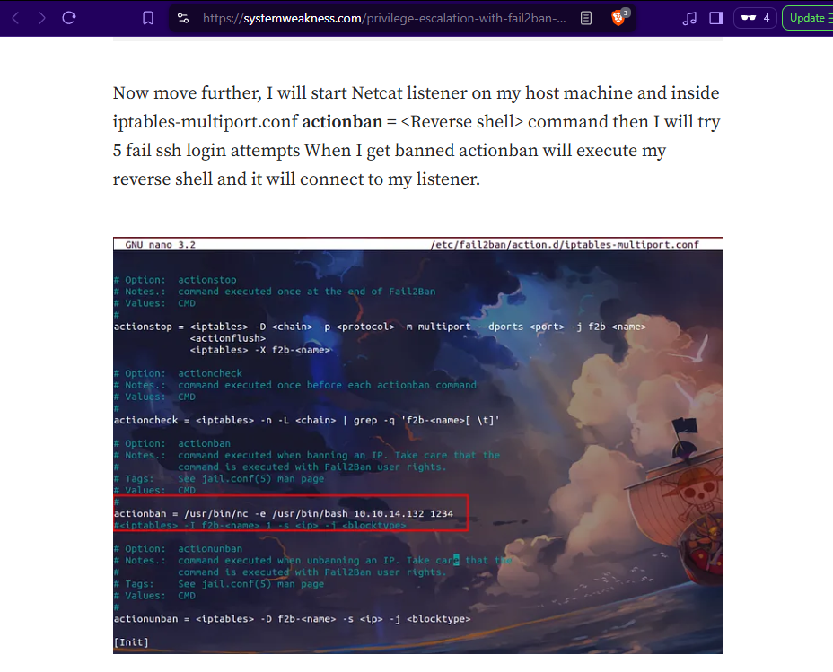 https://systemweakness.com/privilege-escalation-with-fail2ban-nopasswd-d3a6ee69db49