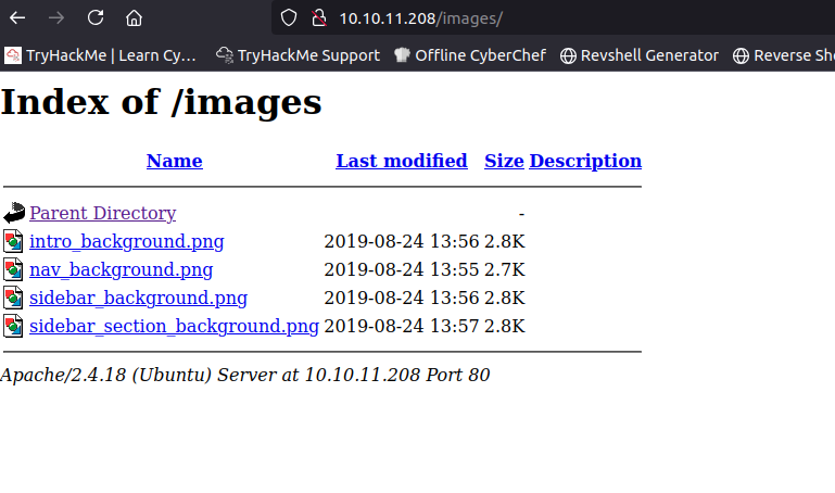 root@ip-10-10-22-36:~# curl -I 10.10.11.208 HTTP/1.1 200 OK Date: Mon, 10 Mar 2025 11:38:56 GMT Server: Apache/2.4.18 (Ubuntu) Last-Modified: Sat, 24 Aug 2019 21:04:28 GMT ETag: "153f-590e344b14f00" Accept-Ranges: bytes Content-Length: 5439 Vary: Accept-Encoding Content-Type: text/html