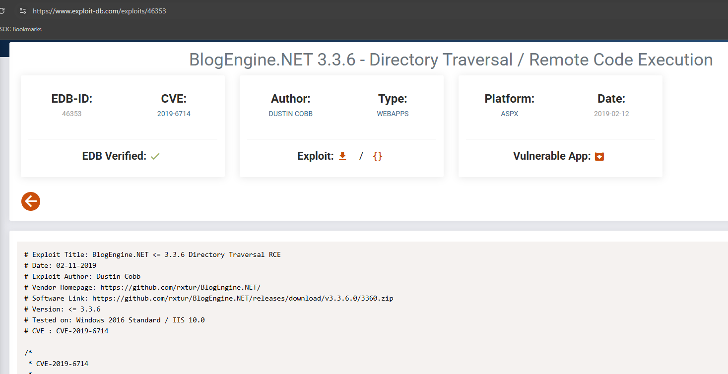 Check the exploit-db looking for something juicy for our version of BlogEngine.NET.