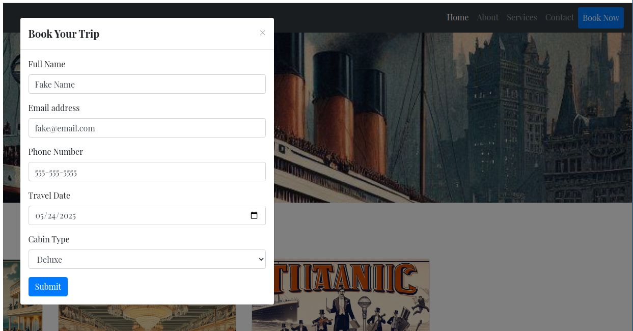 {"name": "Jack Dawson", "email": "jack.dawson@titanic.htb", "phone": "555-123-4567", "date": "2024-08-23", "cabin": "Standard"}