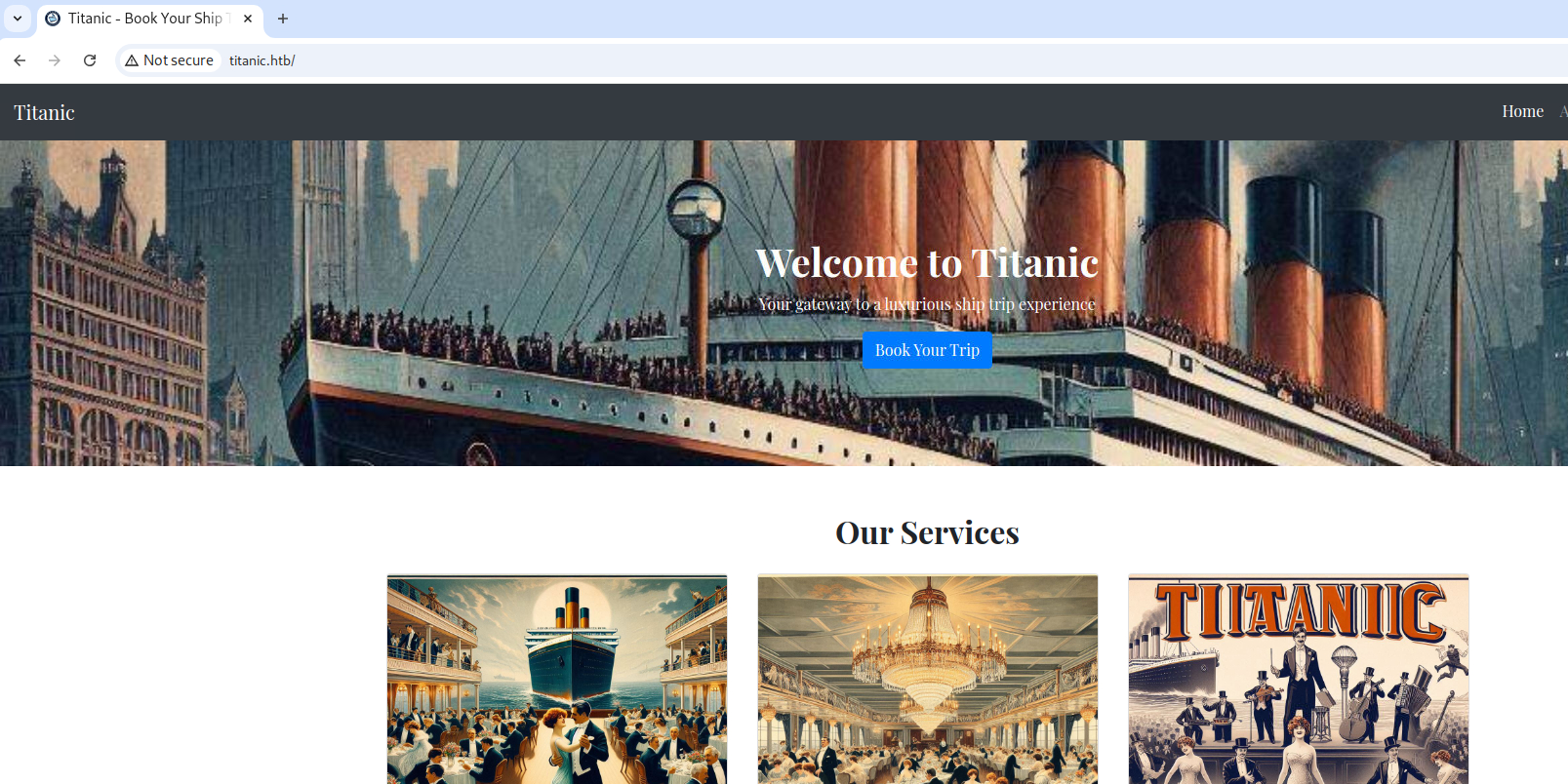 Update the /etc/hosts file to include the titanic.htb redirect.