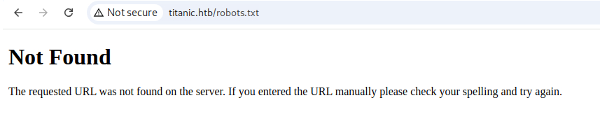 └──╼ [★]$ curl -I http://titanic.htb HTTP/1.1 200 OK Date: Sat, 24 May 2025 03:40:22 GMT Server: Werkzeug/3.0.3 Python/3.10.12 Content-Type: text/html; charset=utf-8 Content-Length: 7399