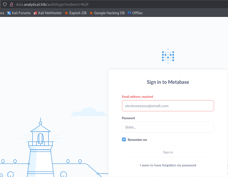 Check the data.analytics.htb landing page.