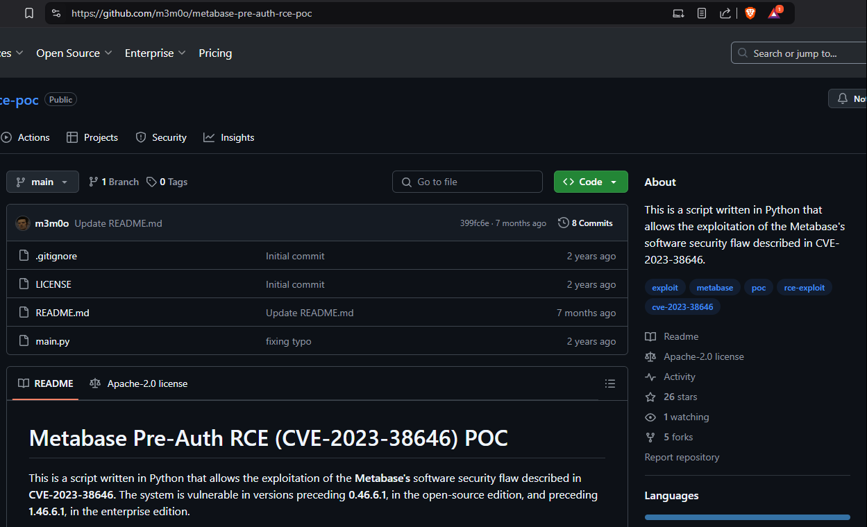 Check the GitHub for a potential exploit for the Metabase installation.