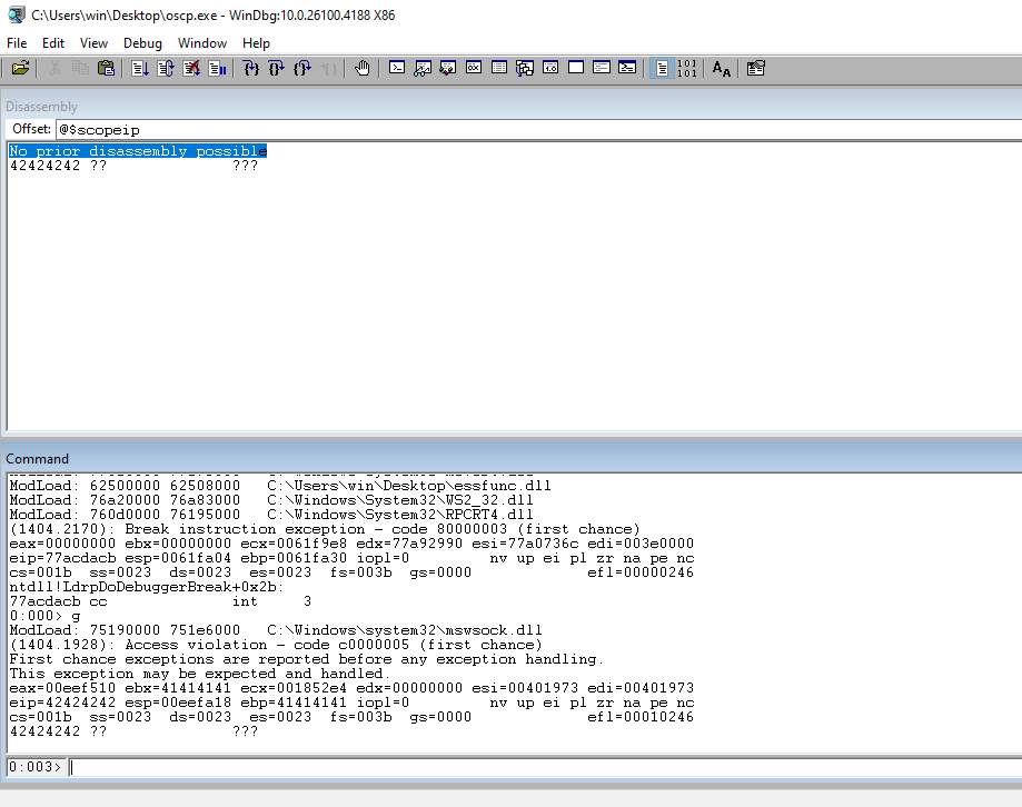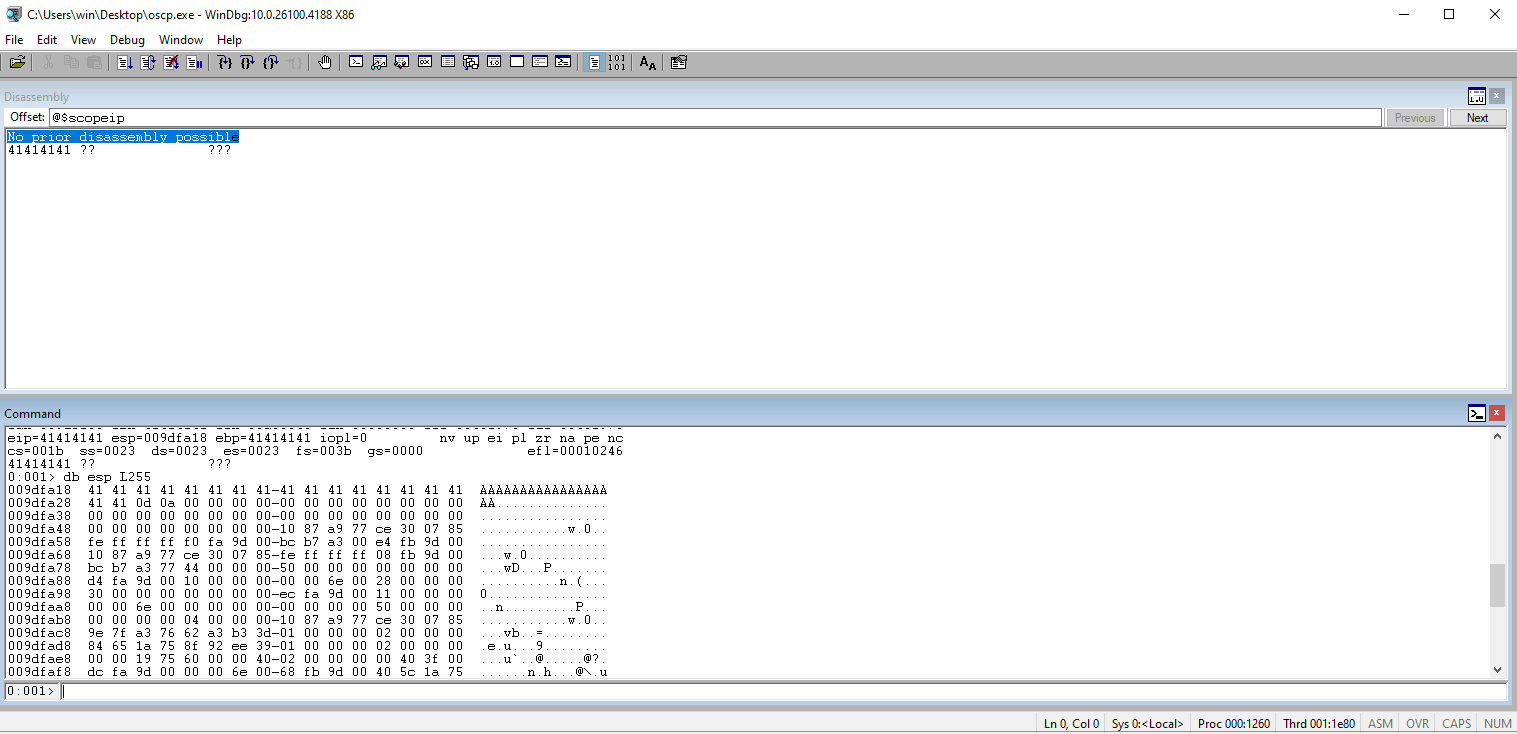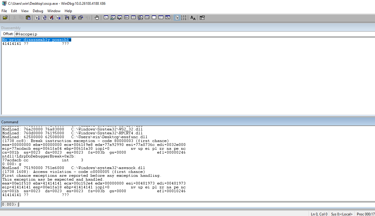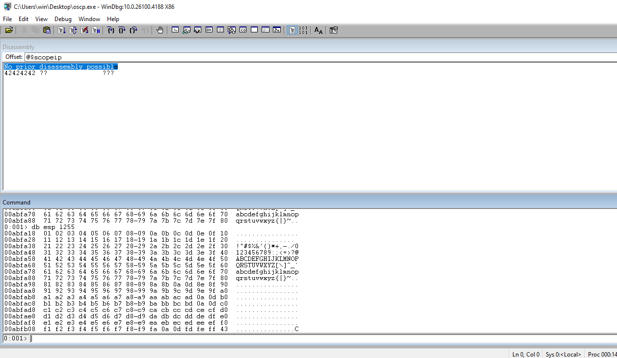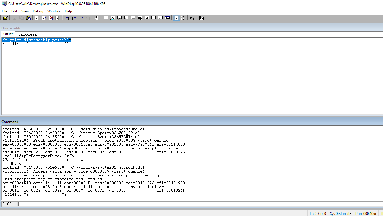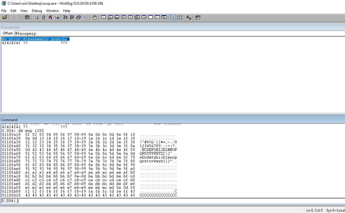 ┌──(kali㉿kali)-[~/Documents/thm/bufferoverflowprep/OVERFLOW1] └─$ msf-pattern_create -l 2400 Aa0Aa1Aa2Aa3Aa4Aa5Aa6Aa7Aa8Aa9Ab0Ab1Ab2Ab3Ab4Ab5Ab6Ab7Ab8Ab9Ac0Ac1Ac2Ac3Ac4Ac5Ac6Ac7Ac8Ac9Ad0Ad1Ad2Ad3Ad4Ad5Ad6Ad7Ad8Ad9Ae0Ae1Ae2Ae3Ae4Ae5Ae6Ae7Ae8Ae9Af0Af1Af2Af3Af4Af5Af6Af7Af8Af9Ag0Ag1Ag2Ag3Ag4Ag5Ag6Ag7Ag8Ag9Ah0Ah1Ah2Ah3Ah4Ah5Ah6Ah7Ah8Ah9Ai0Ai1Ai2Ai3Ai4Ai5Ai6Ai7Ai8Ai9Aj0Aj1Aj2Aj3Aj4Aj5Aj6Aj7Aj8Aj9Ak0Ak1Ak2Ak3Ak4Ak5Ak6Ak7Ak8Ak9Al0Al1Al2Al3Al4Al5Al6Al7Al8Al9Am0Am1Am2Am3Am4Am5Am6Am7Am8Am9An0An1An2An3An4An5An6An7An8An9Ao0Ao1Ao2Ao3Ao4Ao5Ao6Ao7Ao8Ao9Ap0Ap1Ap2Ap3Ap4Ap5Ap6Ap7Ap8Ap9Aq0Aq1Aq2Aq3Aq4Aq5Aq6Aq7Aq8Aq9Ar0Ar1Ar2Ar3Ar4Ar5Ar6Ar7Ar8Ar9As0As1As2As3As4As5As6As7As8As9At0At1At2At3At4At5At6At7At8At9Au0Au1Au2Au3Au4Au5Au6Au7Au8Au9Av0Av1Av2Av3Av4Av5Av6Av7Av8Av9Aw0Aw1Aw2Aw3Aw4Aw5Aw6Aw7Aw8Aw9Ax0Ax1Ax2Ax3Ax4Ax5Ax6Ax7Ax8Ax9Ay0Ay1Ay2Ay3Ay4Ay5Ay6Ay7Ay8Ay9Az0Az1Az2Az3Az4Az5Az6Az7Az8Az9Ba0Ba1Ba2Ba3Ba4Ba5Ba6Ba7Ba8Ba9Bb0Bb1Bb2Bb3Bb4Bb5Bb6Bb7Bb8Bb9Bc0Bc1Bc2Bc3Bc4Bc5Bc6Bc7Bc8Bc9Bd0Bd1Bd2Bd3Bd4Bd5Bd6Bd7Bd8Bd9Be0Be1Be2Be3Be4Be5Be6Be7Be8Be9Bf0Bf1Bf2Bf3Bf4Bf5Bf6Bf7Bf8Bf9Bg0Bg1Bg2Bg3Bg4Bg5Bg6Bg7Bg8Bg9Bh0Bh1Bh2Bh3Bh4Bh5Bh6Bh7Bh8Bh9Bi0Bi1Bi2Bi3Bi4Bi5Bi6Bi7Bi8Bi9Bj0Bj1Bj2Bj3Bj4Bj5Bj6Bj7Bj8Bj9Bk0Bk1Bk2Bk3Bk4Bk5Bk6Bk7Bk8Bk9Bl0Bl1Bl2Bl3Bl4Bl5Bl6Bl7Bl8Bl9Bm0Bm1Bm2Bm3Bm4Bm5Bm6Bm7Bm8Bm9Bn0Bn1Bn2Bn3Bn4Bn5Bn6Bn7Bn8Bn9Bo0Bo1Bo2Bo3Bo4Bo5Bo6Bo7Bo8Bo9Bp0Bp1Bp2Bp3Bp4Bp5Bp6Bp7Bp8Bp9Bq0Bq1Bq2Bq3Bq4Bq5Bq6Bq7Bq8Bq9Br0Br1Br2Br3Br4Br5Br6Br7Br8Br9Bs0Bs1Bs2Bs3Bs4Bs5Bs6Bs7Bs8Bs9Bt0Bt1Bt2Bt3Bt4Bt5Bt6Bt7Bt8Bt9Bu0Bu1Bu2Bu3Bu4Bu5Bu6Bu7Bu8Bu9Bv0Bv1Bv2Bv3Bv4Bv5Bv6Bv7Bv8Bv9Bw0Bw1Bw2Bw3Bw4Bw5Bw6Bw7Bw8Bw9Bx0Bx1Bx2Bx3Bx4Bx5Bx6Bx7Bx8Bx9By0By1By2By3By4By5By6By7By8By9Bz0Bz1Bz2Bz3Bz4Bz5Bz6Bz7Bz8Bz9Ca0Ca1Ca2Ca3Ca4Ca5Ca6Ca7Ca8Ca9Cb0Cb1Cb2Cb3Cb4Cb5Cb6Cb7Cb8Cb9Cc0Cc1Cc2Cc3Cc4Cc5Cc6Cc7Cc8Cc9Cd0Cd1Cd2Cd3Cd4Cd5Cd6Cd7Cd8Cd9Ce0Ce1Ce2Ce3Ce4Ce5Ce6Ce7Ce8Ce9Cf0Cf1Cf2Cf3Cf4Cf5Cf6Cf7Cf8Cf9Cg0Cg1Cg2Cg3Cg4Cg5Cg6Cg7Cg8Cg9Ch0Ch1Ch2Ch3Ch4Ch5Ch6Ch7Ch8Ch9Ci0Ci1Ci2Ci3Ci4Ci5Ci6Ci7Ci8Ci9Cj0Cj1Cj2Cj3Cj4Cj5Cj6Cj7Cj8Cj9Ck0Ck1Ck2Ck3Ck4Ck5Ck6Ck7Ck8Ck9Cl0Cl1Cl2Cl3Cl4Cl5Cl6Cl7Cl8Cl9Cm0Cm1Cm2Cm3Cm4Cm5Cm6Cm7Cm8Cm9Cn0Cn1Cn2Cn3Cn4Cn5Cn6Cn7Cn8Cn9Co0Co1Co2Co3Co4Co5Co6Co7Co8Co9Cp0Cp1Cp2Cp3Cp4Cp5Cp6Cp7Cp8Cp9Cq0Cq1Cq2Cq3Cq4Cq5Cq6Cq7Cq8Cq9Cr0Cr1Cr2Cr3Cr4Cr5Cr6Cr7Cr8Cr9Cs0Cs1Cs2Cs3Cs4Cs5Cs6Cs7Cs8Cs9Ct0Ct1Ct2Ct3Ct4Ct5Ct6Ct7Ct8Ct9Cu0Cu1Cu2Cu3Cu4Cu5Cu6Cu7Cu8Cu9Cv0Cv1Cv2Cv3Cv4Cv5Cv6Cv7Cv8Cv9Cw0Cw1Cw2Cw3Cw4Cw5Cw6Cw7Cw8Cw9Cx0Cx1Cx2Cx3Cx4Cx5Cx6Cx7Cx8Cx9Cy0Cy1Cy2Cy3Cy4Cy5Cy6Cy7Cy8Cy9Cz0Cz1Cz2Cz3Cz4Cz5Cz6Cz7Cz8Cz9Da0Da1Da2Da3Da4Da5Da6Da7Da8Da9Db0Db1Db2Db3Db4Db5Db6Db7Db8Db9