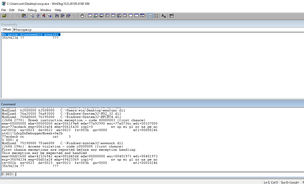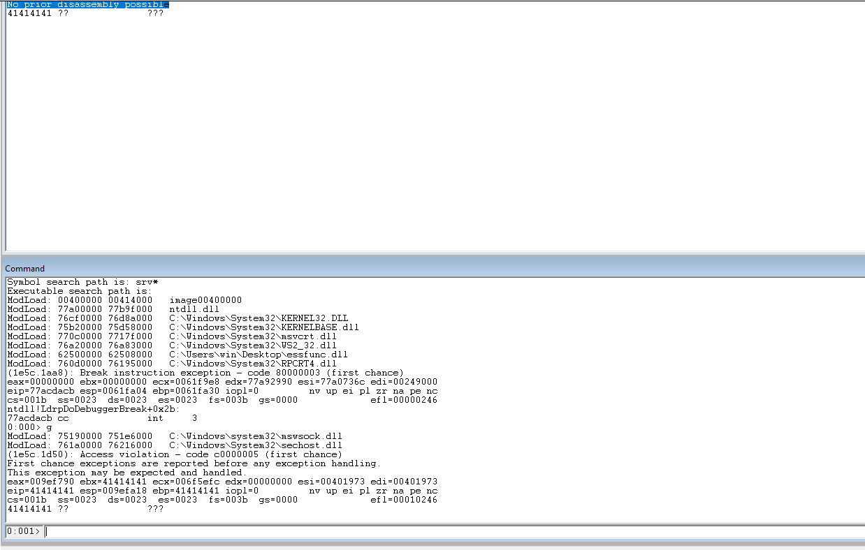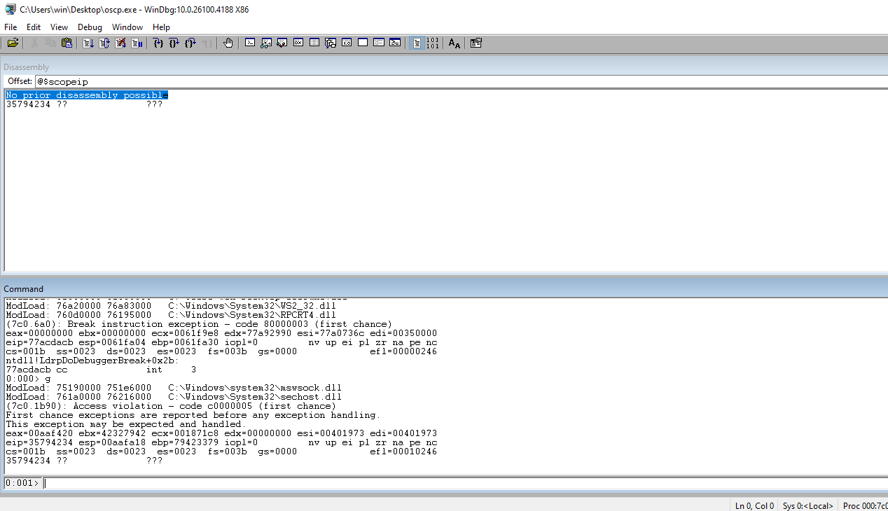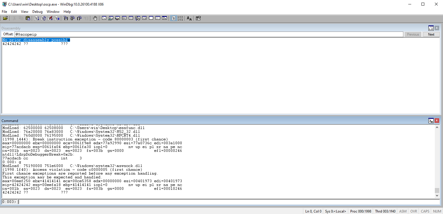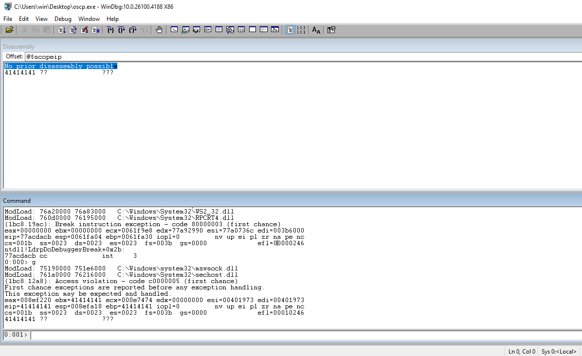 ┌──(kali㉿kali)-[~/Documents/thm/bufferoverflowprep/OVERFLOW1] └─$ msf-pattern_create -l 2400 Aa0Aa1Aa2Aa3Aa4Aa5Aa6Aa7Aa8Aa9Ab0Ab1Ab2Ab3Ab4Ab5Ab6Ab7Ab8Ab9Ac0Ac1Ac2Ac3Ac4Ac5Ac6Ac7Ac8Ac9Ad0Ad1Ad2Ad3Ad4Ad5Ad6Ad7Ad8Ad9Ae0Ae1Ae2Ae3Ae4Ae5Ae6Ae7Ae8Ae9Af0Af1Af2Af3Af4Af5Af6Af7Af8Af9Ag0Ag1Ag2Ag3Ag4Ag5Ag6Ag7Ag8Ag9Ah0Ah1Ah2Ah3Ah4Ah5Ah6Ah7Ah8Ah9Ai0Ai1Ai2Ai3Ai4Ai5Ai6Ai7Ai8Ai9Aj0Aj1Aj2Aj3Aj4Aj5Aj6Aj7Aj8Aj9Ak0Ak1Ak2Ak3Ak4Ak5Ak6Ak7Ak8Ak9Al0Al1Al2Al3Al4Al5Al6Al7Al8Al9Am0Am1Am2Am3Am4Am5Am6Am7Am8Am9An0An1An2An3An4An5An6An7An8An9Ao0Ao1Ao2Ao3Ao4Ao5Ao6Ao7Ao8Ao9Ap0Ap1Ap2Ap3Ap4Ap5Ap6Ap7Ap8Ap9Aq0Aq1Aq2Aq3Aq4Aq5Aq6Aq7Aq8Aq9Ar0Ar1Ar2Ar3Ar4Ar5Ar6Ar7Ar8Ar9As0As1As2As3As4As5As6As7As8As9At0At1At2At3At4At5At6At7At8At9Au0Au1Au2Au3Au4Au5Au6Au7Au8Au9Av0Av1Av2Av3Av4Av5Av6Av7Av8Av9Aw0Aw1Aw2Aw3Aw4Aw5Aw6Aw7Aw8Aw9Ax0Ax1Ax2Ax3Ax4Ax5Ax6Ax7Ax8Ax9Ay0Ay1Ay2Ay3Ay4Ay5Ay6Ay7Ay8Ay9Az0Az1Az2Az3Az4Az5Az6Az7Az8Az9Ba0Ba1Ba2Ba3Ba4Ba5Ba6Ba7Ba8Ba9Bb0Bb1Bb2Bb3Bb4Bb5Bb6Bb7Bb8Bb9Bc0Bc1Bc2Bc3Bc4Bc5Bc6Bc7Bc8Bc9Bd0Bd1Bd2Bd3Bd4Bd5Bd6Bd7Bd8Bd9Be0Be1Be2Be3Be4Be5Be6Be7Be8Be9Bf0Bf1Bf2Bf3Bf4Bf5Bf6Bf7Bf8Bf9Bg0Bg1Bg2Bg3Bg4Bg5Bg6Bg7Bg8Bg9Bh0Bh1Bh2Bh3Bh4Bh5Bh6Bh7Bh8Bh9Bi0Bi1Bi2Bi3Bi4Bi5Bi6Bi7Bi8Bi9Bj0Bj1Bj2Bj3Bj4Bj5Bj6Bj7Bj8Bj9Bk0Bk1Bk2Bk3Bk4Bk5Bk6Bk7Bk8Bk9Bl0Bl1Bl2Bl3Bl4Bl5Bl6Bl7Bl8Bl9Bm0Bm1Bm2Bm3Bm4Bm5Bm6Bm7Bm8Bm9Bn0Bn1Bn2Bn3Bn4Bn5Bn6Bn7Bn8Bn9Bo0Bo1Bo2Bo3Bo4Bo5Bo6Bo7Bo8Bo9Bp0Bp1Bp2Bp3Bp4Bp5Bp6Bp7Bp8Bp9Bq0Bq1Bq2Bq3Bq4Bq5Bq6Bq7Bq8Bq9Br0Br1Br2Br3Br4Br5Br6Br7Br8Br9Bs0Bs1Bs2Bs3Bs4Bs5Bs6Bs7Bs8Bs9Bt0Bt1Bt2Bt3Bt4Bt5Bt6Bt7Bt8Bt9Bu0Bu1Bu2Bu3Bu4Bu5Bu6Bu7Bu8Bu9Bv0Bv1Bv2Bv3Bv4Bv5Bv6Bv7Bv8Bv9Bw0Bw1Bw2Bw3Bw4Bw5Bw6Bw7Bw8Bw9Bx0Bx1Bx2Bx3Bx4Bx5Bx6Bx7Bx8Bx9By0By1By2By3By4By5By6By7By8By9Bz0Bz1Bz2Bz3Bz4Bz5Bz6Bz7Bz8Bz9Ca0Ca1Ca2Ca3Ca4Ca5Ca6Ca7Ca8Ca9Cb0Cb1Cb2Cb3Cb4Cb5Cb6Cb7Cb8Cb9Cc0Cc1Cc2Cc3Cc4Cc5Cc6Cc7Cc8Cc9Cd0Cd1Cd2Cd3Cd4Cd5Cd6Cd7Cd8Cd9Ce0Ce1Ce2Ce3Ce4Ce5Ce6Ce7Ce8Ce9Cf0Cf1Cf2Cf3Cf4Cf5Cf6Cf7Cf8Cf9Cg0Cg1Cg2Cg3Cg4Cg5Cg6Cg7Cg8Cg9Ch0Ch1Ch2Ch3Ch4Ch5Ch6Ch7Ch8Ch9Ci0Ci1Ci2Ci3Ci4Ci5Ci6Ci7Ci8Ci9Cj0Cj1Cj2Cj3Cj4Cj5Cj6Cj7Cj8Cj9Ck0Ck1Ck2Ck3Ck4Ck5Ck6Ck7Ck8Ck9Cl0Cl1Cl2Cl3Cl4Cl5Cl6Cl7Cl8Cl9Cm0Cm1Cm2Cm3Cm4Cm5Cm6Cm7Cm8Cm9Cn0Cn1Cn2Cn3Cn4Cn5Cn6Cn7Cn8Cn9Co0Co1Co2Co3Co4Co5Co6Co7Co8Co9Cp0Cp1Cp2Cp3Cp4Cp5Cp6Cp7Cp8Cp9Cq0Cq1Cq2Cq3Cq4Cq5Cq6Cq7Cq8Cq9Cr0Cr1Cr2Cr3Cr4Cr5Cr6Cr7Cr8Cr9Cs0Cs1Cs2Cs3Cs4Cs5Cs6Cs7Cs8Cs9Ct0Ct1Ct2Ct3Ct4Ct5Ct6Ct7Ct8Ct9Cu0Cu1Cu2Cu3Cu4Cu5Cu6Cu7Cu8Cu9Cv0Cv1Cv2Cv3Cv4Cv5Cv6Cv7Cv8Cv9Cw0Cw1Cw2Cw3Cw4Cw5Cw6Cw7Cw8Cw9Cx0Cx1Cx2Cx3Cx4Cx5Cx6Cx7Cx8Cx9Cy0Cy1Cy2Cy3Cy4Cy5Cy6Cy7Cy8Cy9Cz0Cz1Cz2Cz3Cz4Cz5Cz6Cz7Cz8Cz9Da0Da1Da2Da3Da4Da5Da6Da7Da8Da9Db0Db1Db2Db3Db4Db5Db6Db7Db8Db9