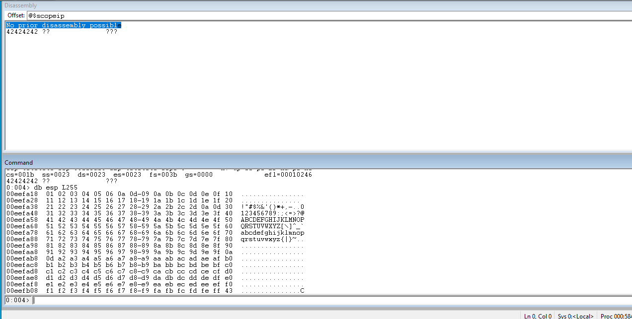 Check the ESP register to see the rest of our payload. This is PROBABLY where the payload is going to go.