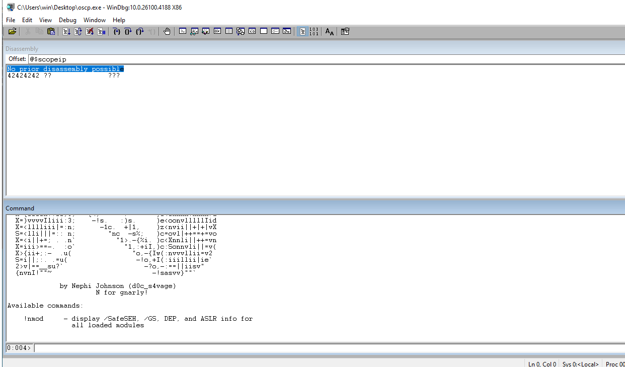 ┌──(kali㉿kali)-[~/Documents/thm/bufferoverflowprep/OVERFLOW4] └─$ msf-pattern_create -l 1000 Aa0Aa1Aa2Aa3Aa4Aa5Aa6Aa7Aa8Aa9Ab0Ab1Ab2Ab3Ab4Ab5Ab6Ab7Ab8Ab9Ac0Ac1Ac2Ac3Ac4Ac5Ac6Ac7Ac8Ac9Ad0Ad1Ad2Ad3Ad4Ad5Ad6Ad7Ad8Ad9Ae0Ae1Ae2Ae3Ae4Ae5Ae6Ae7Ae8Ae9Af0Af1Af2Af3Af4Af5Af6Af7Af8Af9Ag0Ag1Ag2Ag3Ag4Ag5Ag6Ag7Ag8Ag9Ah0Ah1Ah2Ah3Ah4Ah5Ah6Ah7Ah8Ah9Ai0Ai1Ai2Ai3Ai4Ai5Ai6Ai7Ai8Ai9Aj0Aj1Aj2Aj3Aj4Aj5Aj6Aj7Aj8Aj9Ak0Ak1Ak2Ak3Ak4Ak5Ak6Ak7Ak8Ak9Al0Al1Al2Al3Al4Al5Al6Al7Al8Al9Am0Am1Am2Am3Am4Am5Am6Am7Am8Am9An0An1An2An3An4An5An6An7An8An9Ao0Ao1Ao2Ao3Ao4Ao5Ao6Ao7Ao8Ao9Ap0Ap1Ap2Ap3Ap4Ap5Ap6Ap7Ap8Ap9Aq0Aq1Aq2Aq3Aq4Aq5Aq6Aq7Aq8Aq9Ar0Ar1Ar2Ar3Ar4Ar5Ar6Ar7Ar8Ar9As0As1As2As3As4As5As6As7As8As9At0At1At2At3At4At5At6At7At8At9Au0Au1Au2Au3Au4Au5Au6Au7Au8Au9Av0Av1Av2Av3Av4Av5Av6Av7Av8Av9Aw0Aw1Aw2Aw3Aw4Aw5Aw6Aw7Aw8Aw9Ax0Ax1Ax2Ax3Ax4Ax5Ax6Ax7Ax8Ax9Ay0Ay1Ay2Ay3Ay4Ay5Ay6Ay7Ay8Ay9Az0Az1Az2Az3Az4Az5Az6Az7Az8Az9Ba0Ba1Ba2Ba3Ba4Ba5Ba6Ba7Ba8Ba9Bb0Bb1Bb2Bb3Bb4Bb5Bb6Bb7Bb8Bb9Bc0Bc1Bc2Bc3Bc4Bc5Bc6Bc7Bc8Bc9Bd0Bd1Bd2Bd3Bd4Bd5Bd6Bd7Bd8Bd9Be0Be1Be2Be3Be4Be5Be6Be7Be8Be9Bf0Bf1Bf2Bf3Bf4Bf5Bf6Bf7Bf8Bf9Bg0Bg1Bg2Bg3Bg4Bg5Bg6Bg7Bg8Bg9Bh0Bh1Bh2B