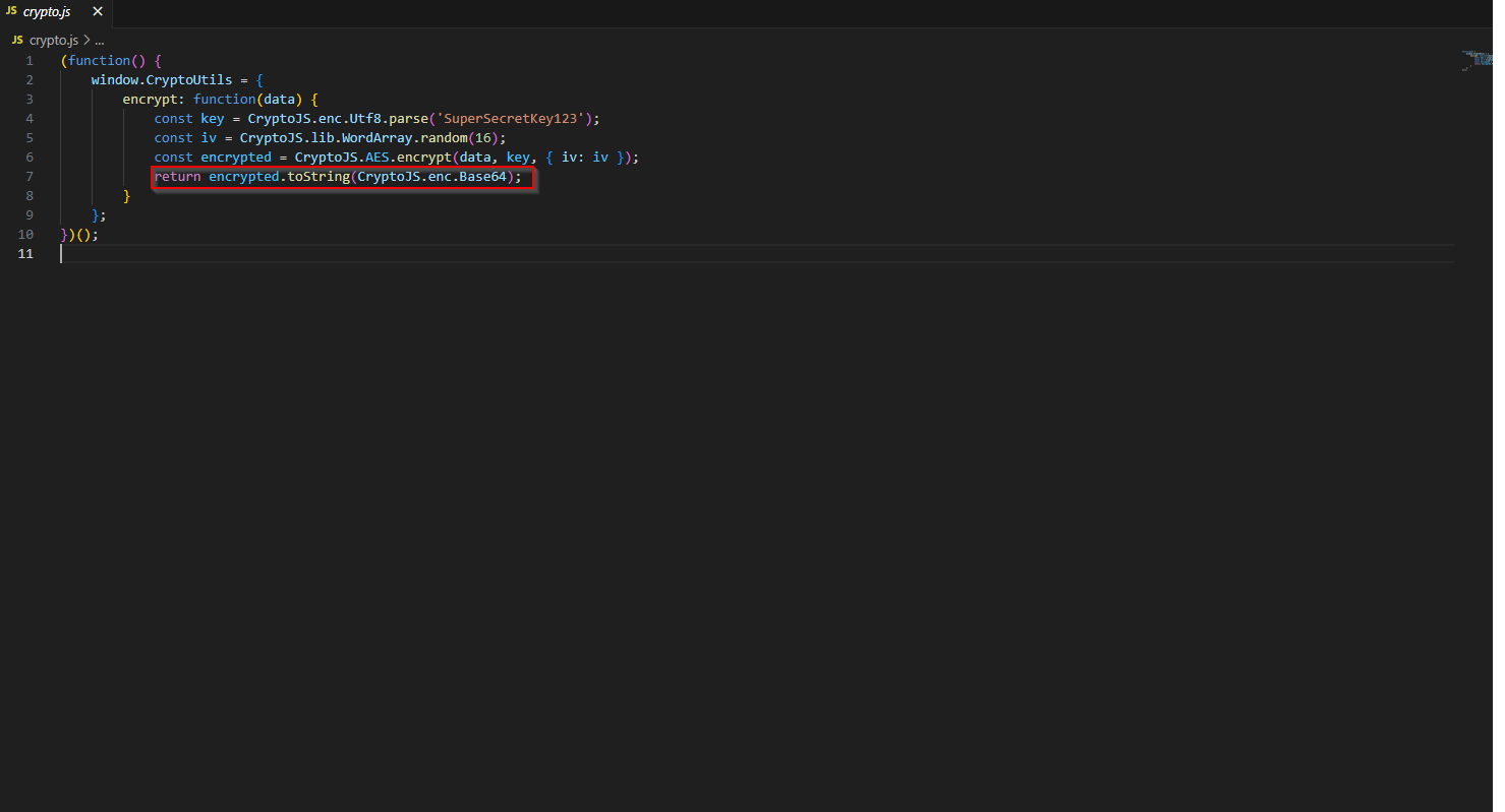Let’s keep looking though. If we check the crypto.js, we can tell that Base64 is definitely in use.