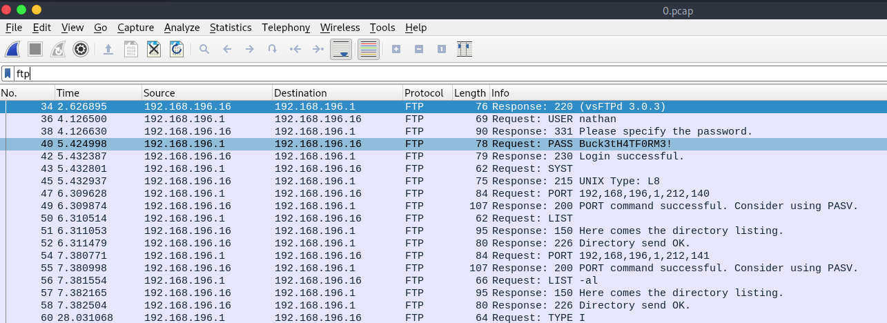 Filter the pcap by the FTP protocol since it is a clear-text protocol.