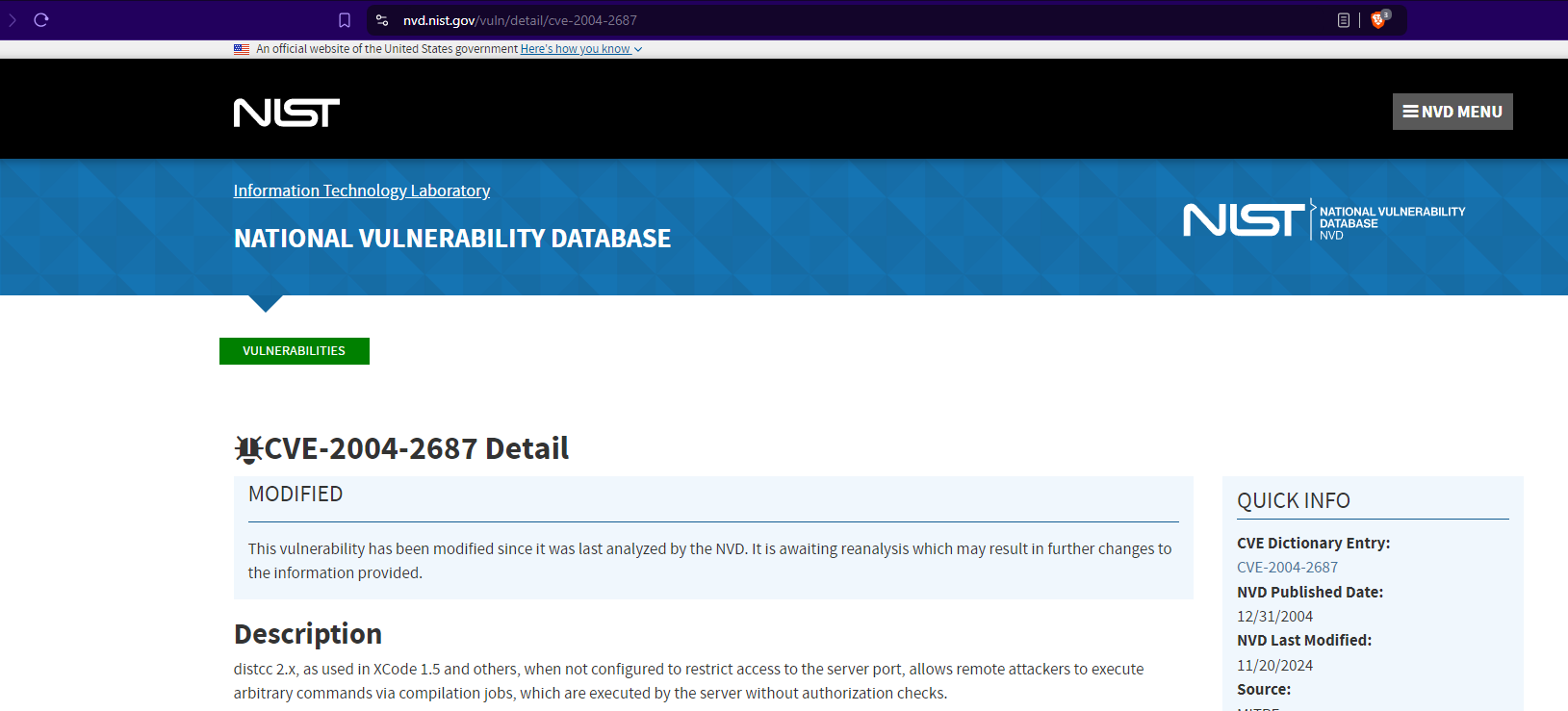 └──╼ [★]$ nmap -sC -sV -A -O -oN nmap 10.10.10.3 Starting Nmap 7.94SVN ( https://nmap.org ) at 2025-01-17 04:52 CST Nmap scan report for 10.10.10.3 Host is up (0.098s latency). Not shown: 996 filtered tcp ports (no-response) PORT STATE SERVICE VERSION 21/tcp open ftp vsftpd 2.3.4 | ftp-syst: | STAT: | FTP server status: | Connected to 10.10.14.29 | Logged in as ftp | TYPE: ASCII | No session bandwidth limit | Session timeout in seconds is 300 | Control connection is plain text | Data connections will be plain text | vsFTPd 2.3.4 - secure, fast, stable |_End of status |_ftp-anon: Anonymous FTP login allowed (FTP code 230) 22/tcp open ssh OpenSSH 4.7p1 Debian 8ubuntu1 (protocol 2.0) | ssh-hostkey: | 1024 60:0f:cf:e1:c0:5f:6a:74:d6:90:24:fa:c4:d5:6c:cd (DSA) |_ 2048 56:56:24:0f:21:1d:de:a7:2b:ae:61:b1:24:3d:e8:f3 (RSA) 139/tcp open netbios-ssn Samba smbd 3.X - 4.X (workgroup: WORKGROUP) 445/tcp open netbios-ssn Samba smbd 3.0.20-Debian (workgroup: WORKGROUP) <snip>