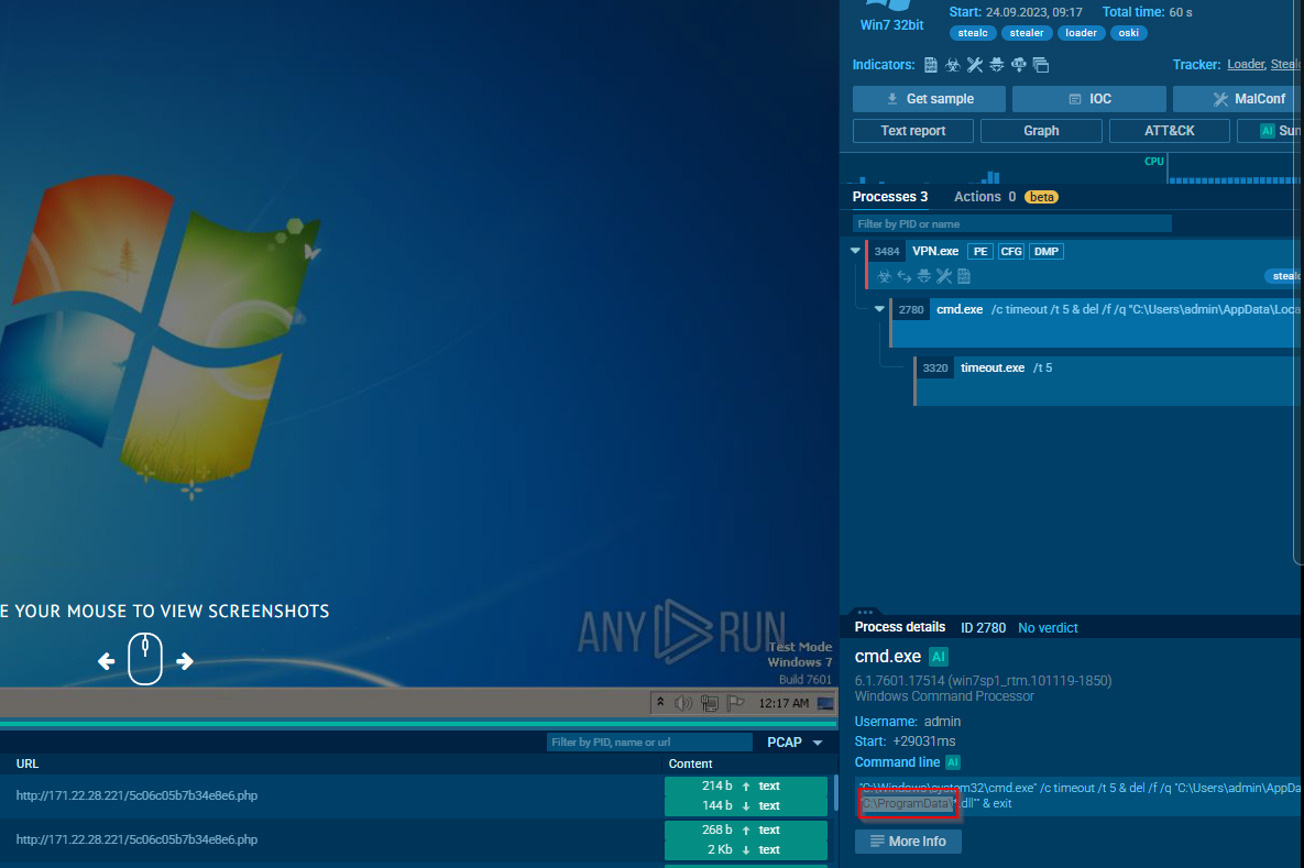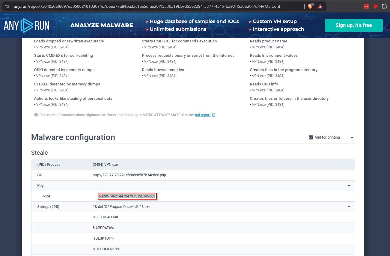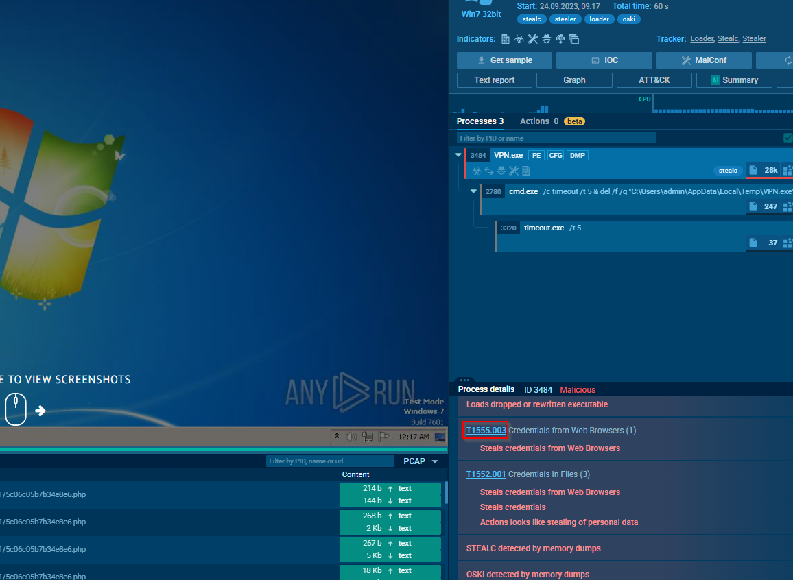 If we review the any.run run, we can get the MITRE framework Technique ID. If we click on the VPN.exe process, it will expose the Technique ID.