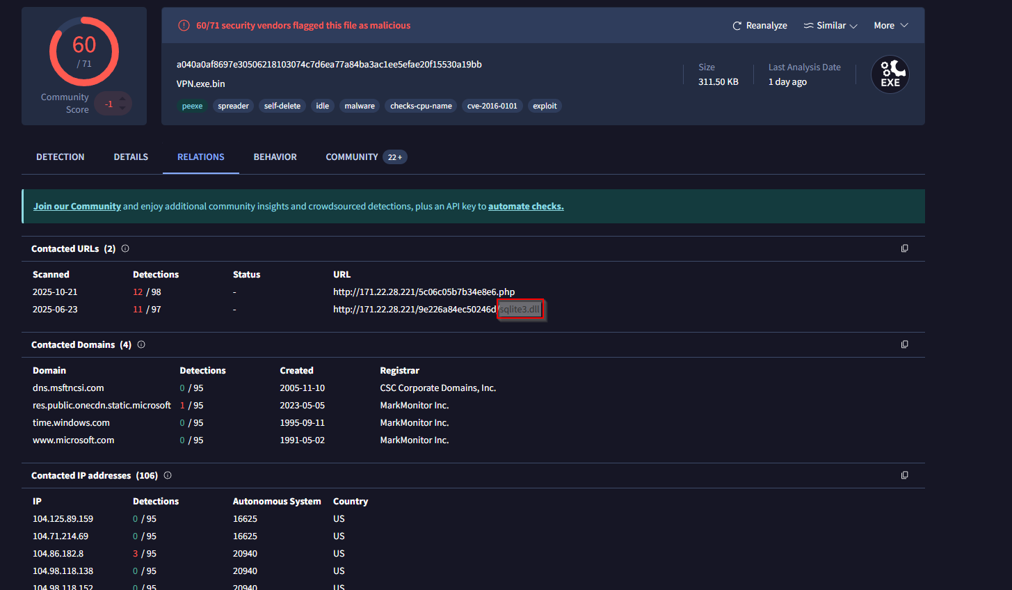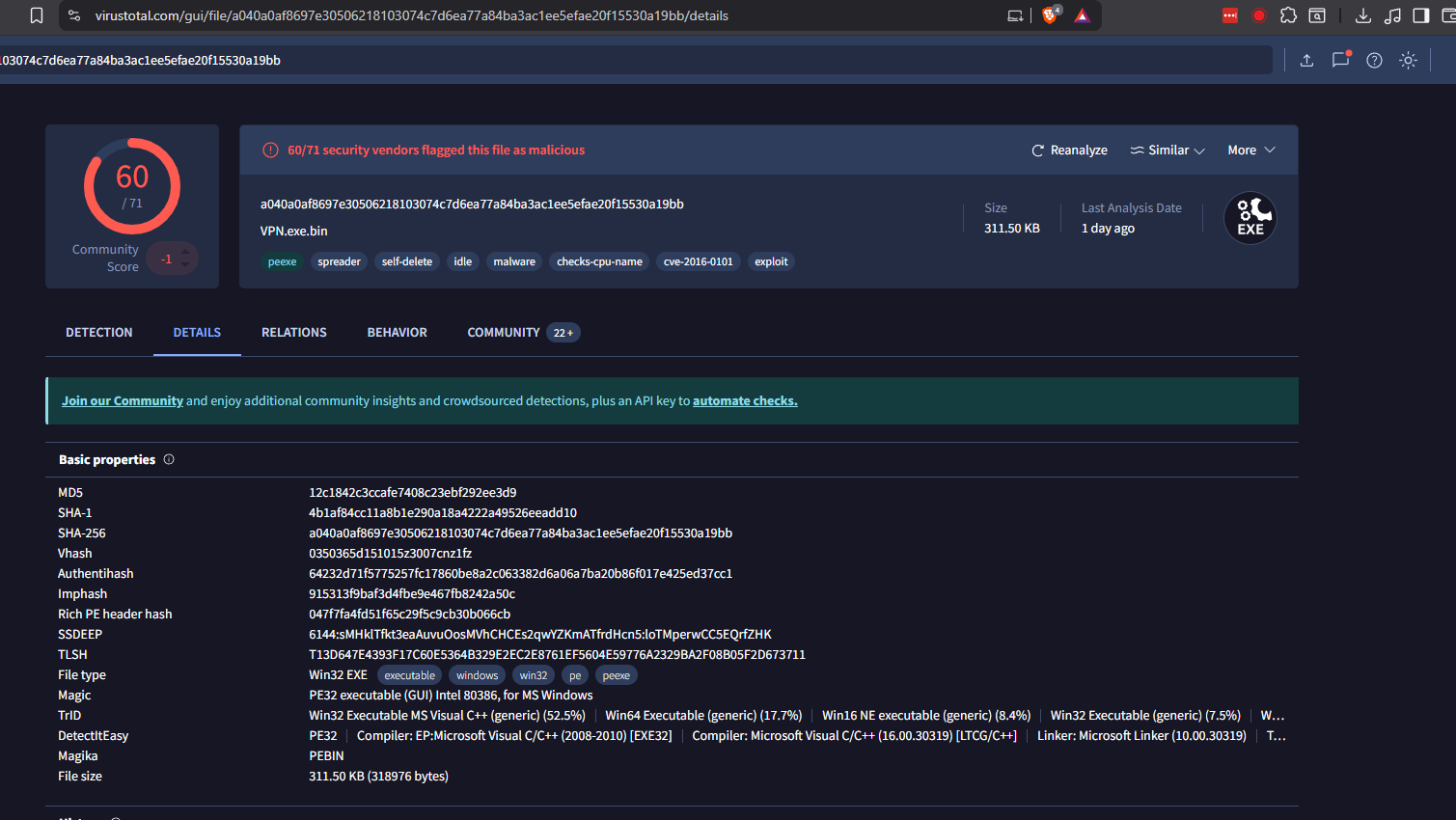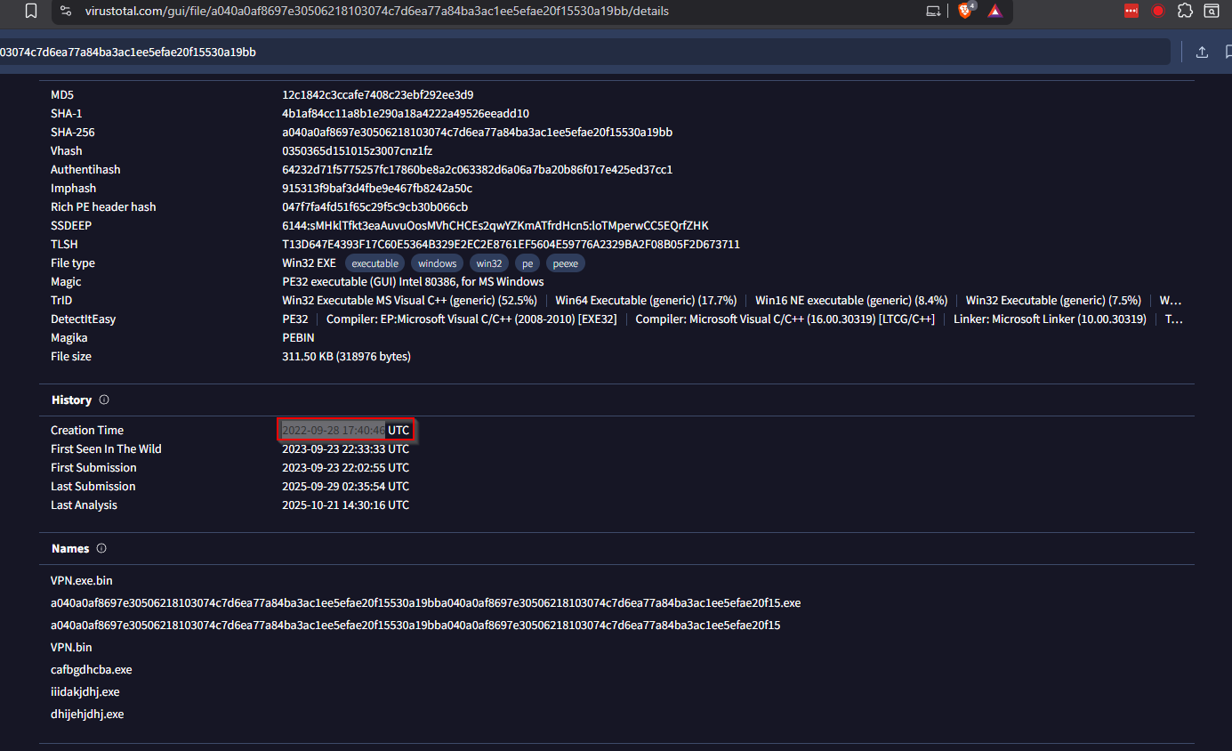 If we review the any.run run, we can get the MITRE framework Technique ID. If we click on the VPN.exe process, it will expose the Technique ID.