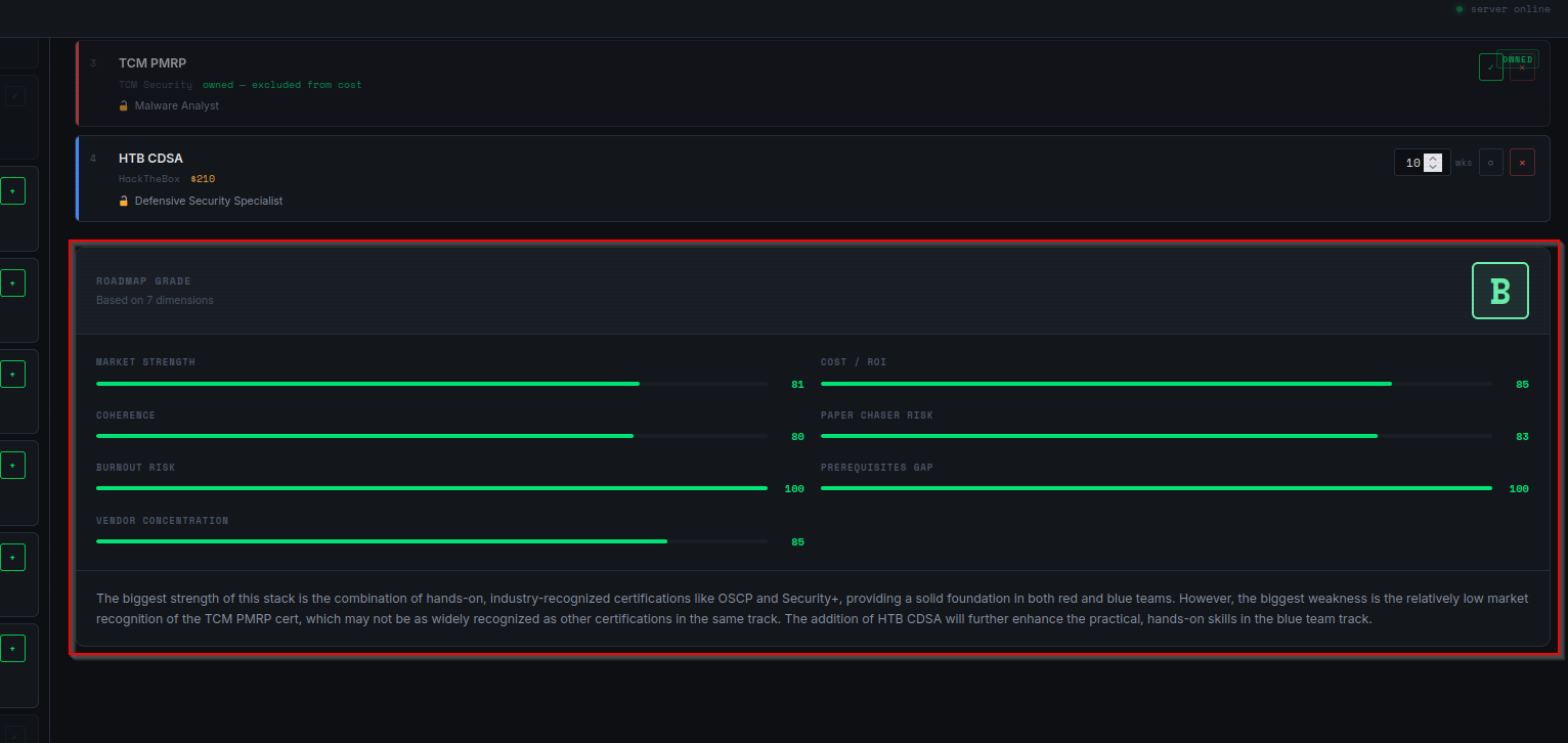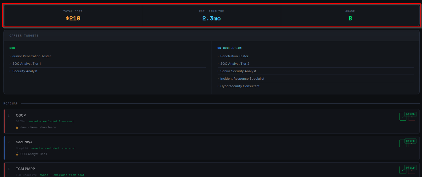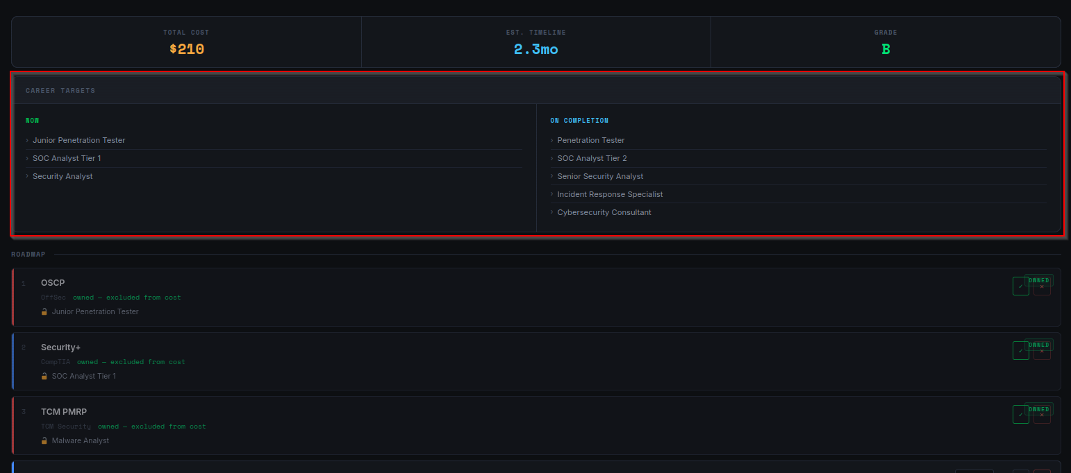 <meta name="description" content="Cyber certification roadmap planner and grader" />